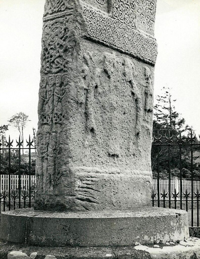 It was Kenneth’s intention that after their coronation in Scone, all subsequent Kings of Scots, would come to Forres, to be accepted by acclamation at this magnificent monolith. This they (and their followers) did by the ritual drawing of their swords (not sharpening, more acquiescent blunting) across the base of the west face of the Stone, at the bottom corner of the coronation panel below the Cross. This practice had been started in ancient Irish Gaelic royal affirmations, with similarities to the stones at Kilsnaggart in Co Armagh, the Cross at Kells in Co Meath, and the Mullaghmast Stone now in the National Museum of Ireland. It was seen as denoting allegiance to a higher order, our Lord Jesus Christ, and an affirmation of a commitment to being a Defender of the Faith. It symbolised the returning of the power of the sword back to the Cross of Christ, by a rightful and just King. It is quite ironic that in later years these sword marks on the Forres Stone (appendix 8) were reported as appearing to be nothing more than intentional defacement and disfigurement, akin to vandalism, and the meaning of their original purpose was lost to posterity.