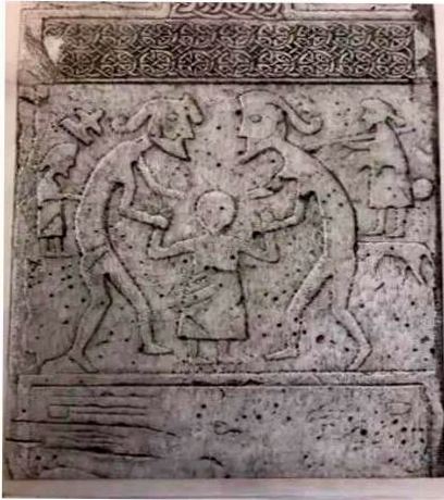 Note 3; There are interlaced knot carvings all around the outside edges of the Stone. At the bottom of the east edge there are images of women holding hands.