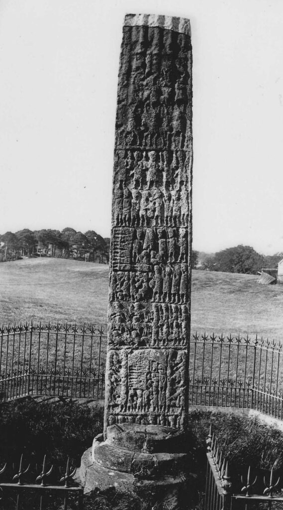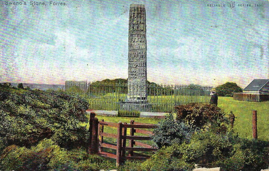 For hundreds of years, historians have postulated their various theories as to what the carvings are all about on the Stone of Forres, that ancient obelisk now commonly, and mistakenly, known as Sueno’s Stone. This Pictish style sandstone cross-slab, at 23 feet the tallest in the country, is situated on the north east side of Forres in Morayshire, on what was once the B9011 road to Kinloss. Who made it, when, and why, has never been answered satisfactorily. The symbolism used on the Forres Stone is quite different to other stones, so mystery has surrounded any interpretation. Did it depict a victory for the Danes over the Scots, or the Picts over the Danes? Not likely. Did it depict a victory for the Dal Riada Gaels over the Picts? Maybe. Did it depict a triumph for Christianity over warfare? Most definitely.