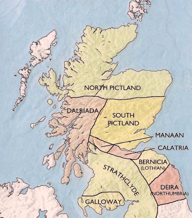 - 841AD; Kenneth MacAlpin, Gaelic King of Dal Riada, overcomes the Picts in Fortriu.