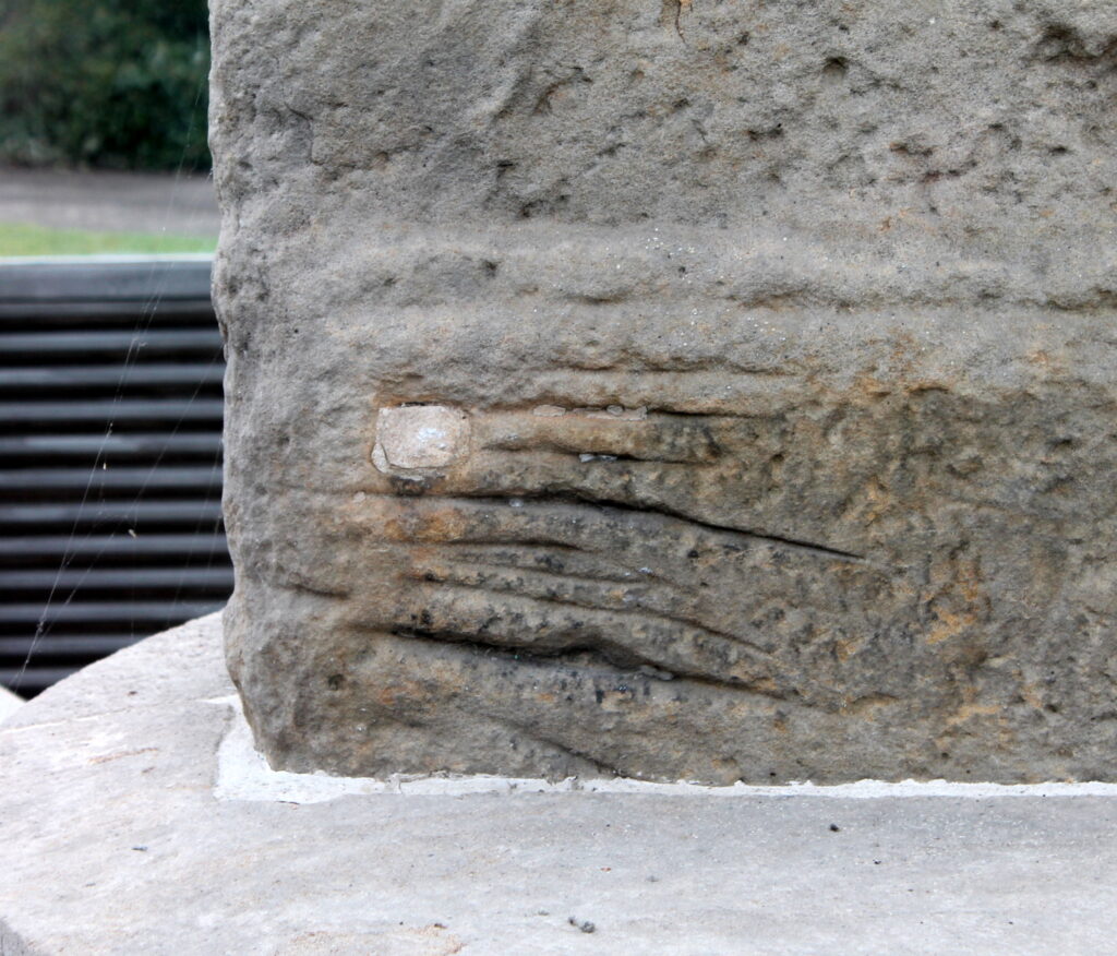 It has been suggested that the marks were made much later than the time of erection, by workmen sharpening their axes, sickles or scythes. I believe that these are tools and implements which are best sharpened by using an individual handheld whetstone. I have conducted experiments by drawing a steel blade across hard yellow-grey sandstone, and concluded that any ritual drawing by a King and his retinue, with hundreds of followers performing the same action, would leave similar indentations (appendix 9). They would draw their sword blades in a sawing motion across a slot, with an initial guide groove hewn by a stonemason’s hammer and chisel. What words they repeated during this ritual we will never know, but they were undoubtedly about swearing allegiance to their God and to their King.
